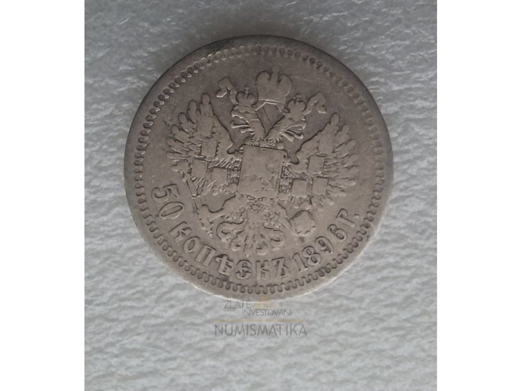 investiční stříbro-stříbrná ruská 50 kopějka Mikuláš II. 1896-akce