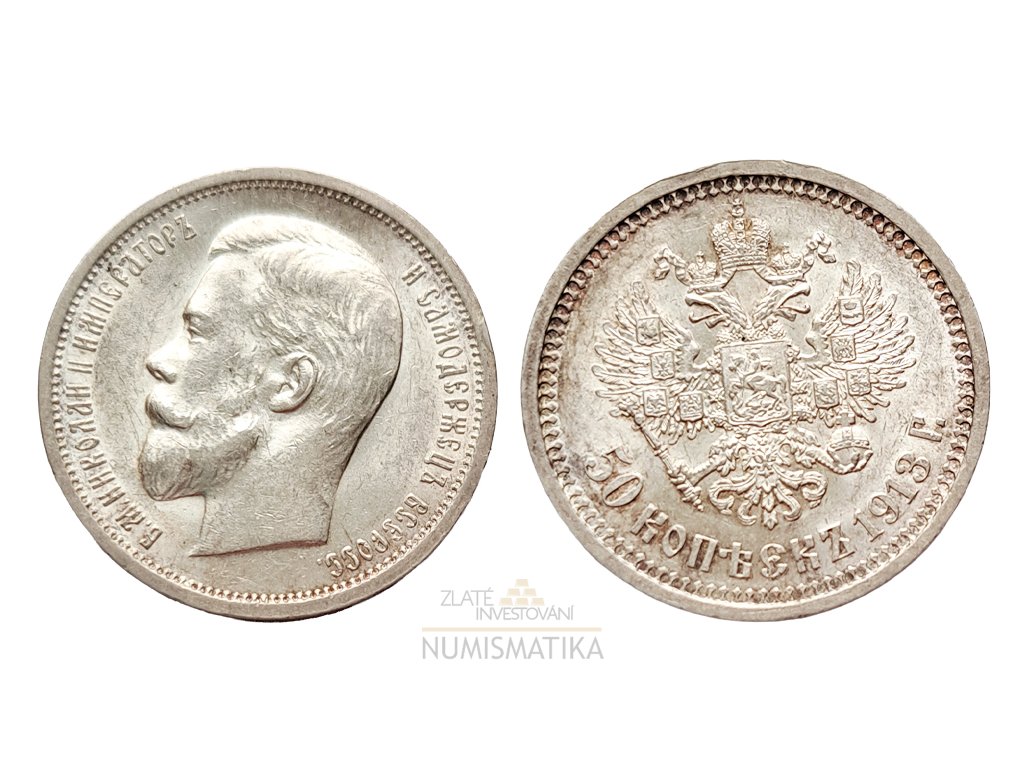 investiční stříbro-Ruská stříbrná 50 kopějka Mikuláš II. 1913 BC