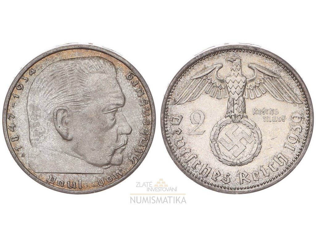 investiční stříbro-Stříbrná říšská 2 marka-1939-A-Paul von Hindenburg