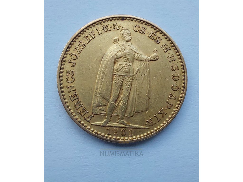 Zlatá mince Dvacetikoruna Františka Josefa I. uherská ražba ročníková 1901