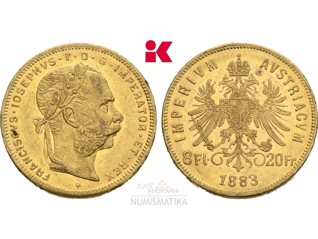 investiční zlato- Osmizlatník-dvaceti frank -8 gulden 1883-rakouská ražba -vzácný ročník