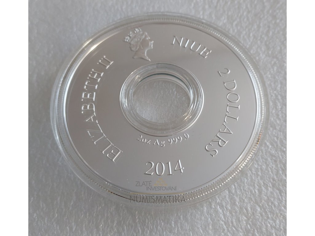 Krásná a nevšední mohutná investiční mince novozélandské mincovny o hmotnosti 2 Oz ještě s motivem anglické královny Alžběty II. MInce s kruhovým středovým otvorem je nesmírně dekorativní, plochu má v provedení proof /vysoký lesk/ a je vložena do originální ochranné plastové kapsle. Nominální hodnota je 2 NZD.