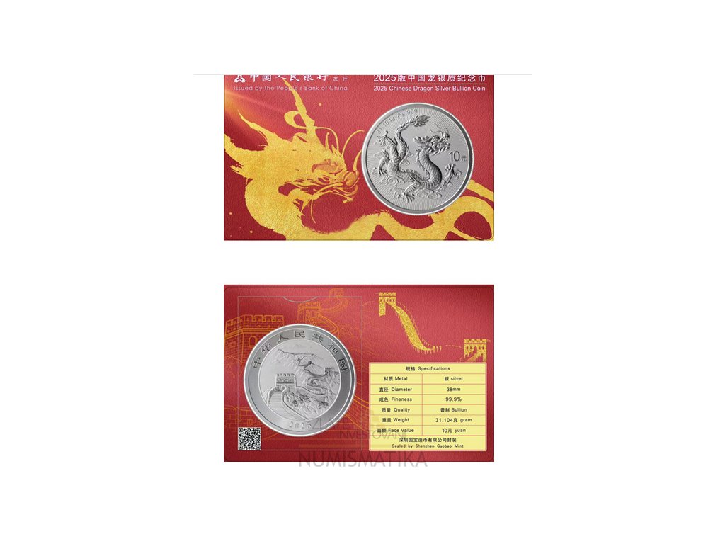 Investiční stříbrná mince Čínský drak 2025 -1 Oz