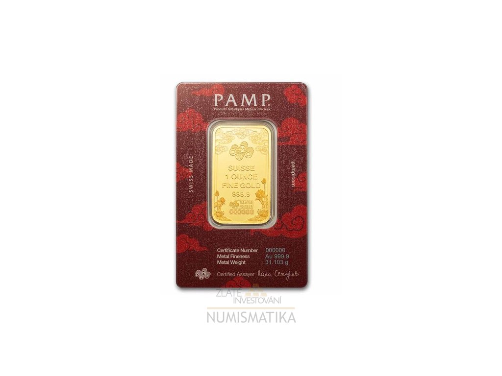 Investiční zlatá cihla PAMP Švýcarsko - Drak štěstí - 1 Oz