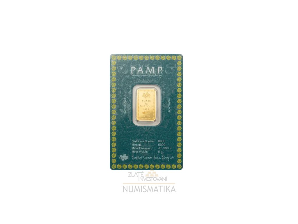 Investiční zlato-Zlatý slitek Diwali-Lakšmí a rangoli -5g-PAMP