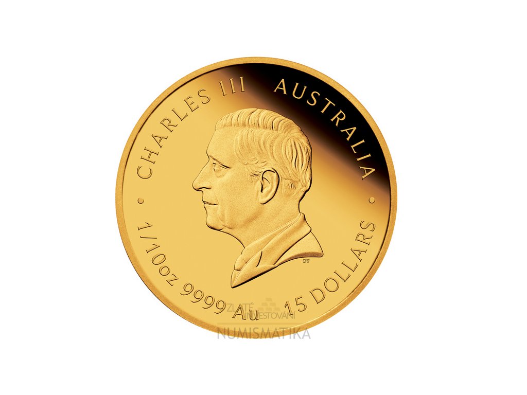 Náklad mince o hmotnosti 1/10 Oz (3,103g) ryzího zlata 999.9/1000 Au v provedení proof je pouhých 2500 kusů.