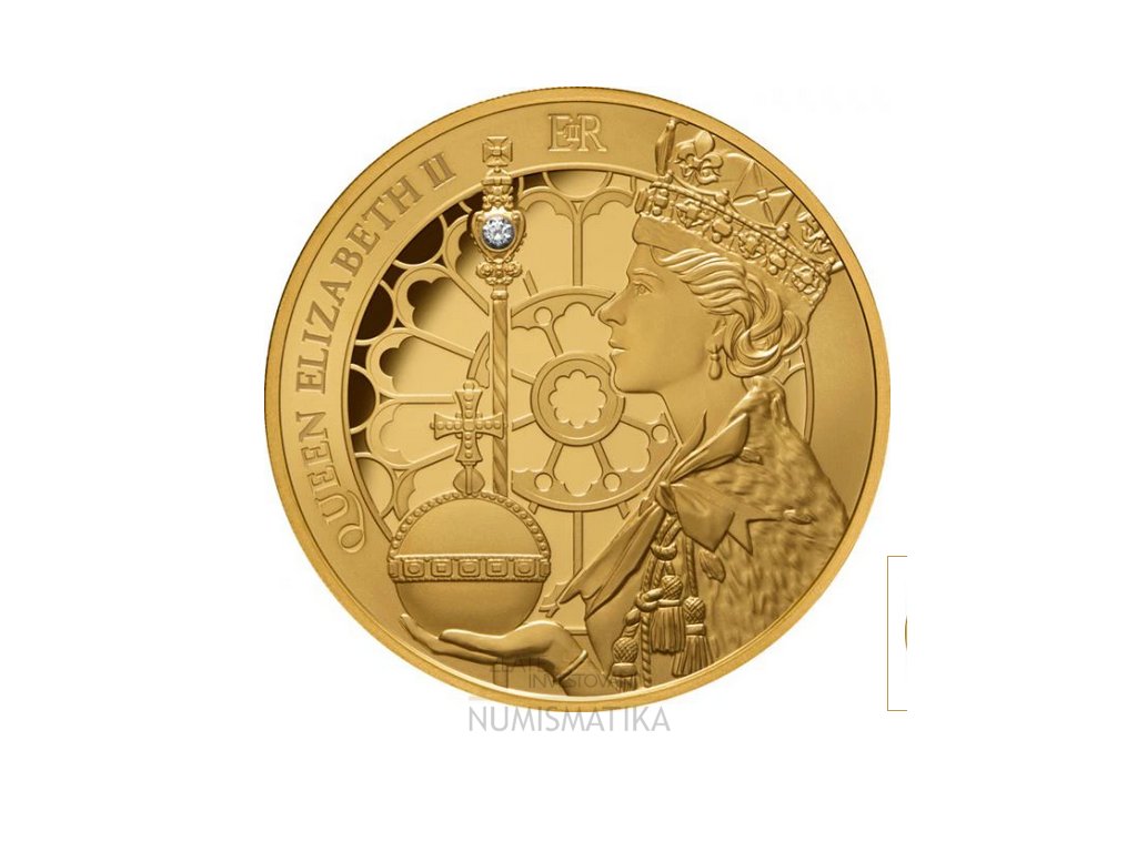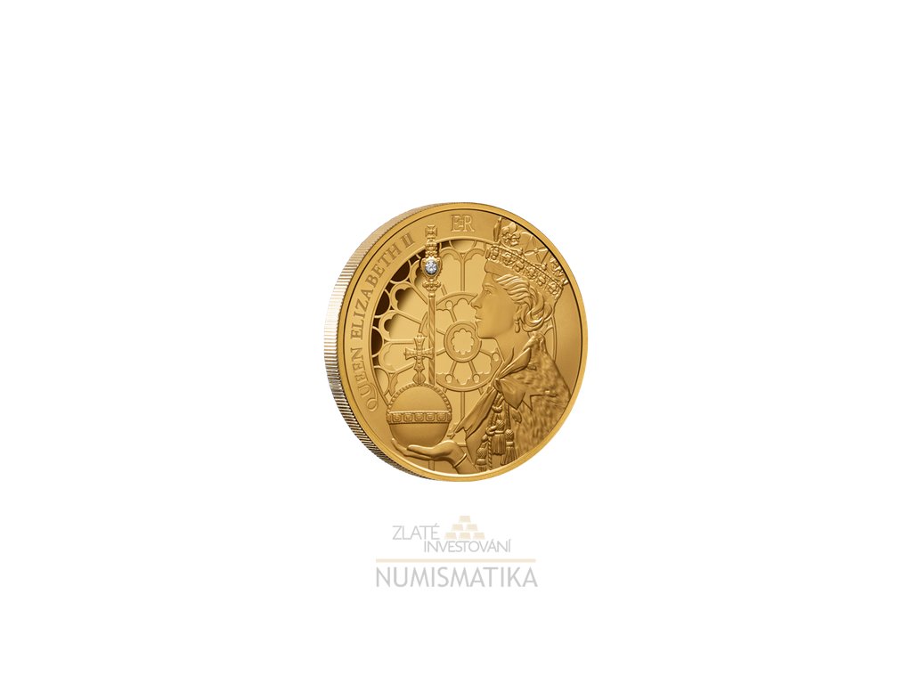 Zlatá mince 70.výročí korunovace Královny Alžběty II.-1 Oz s diamantem 2023