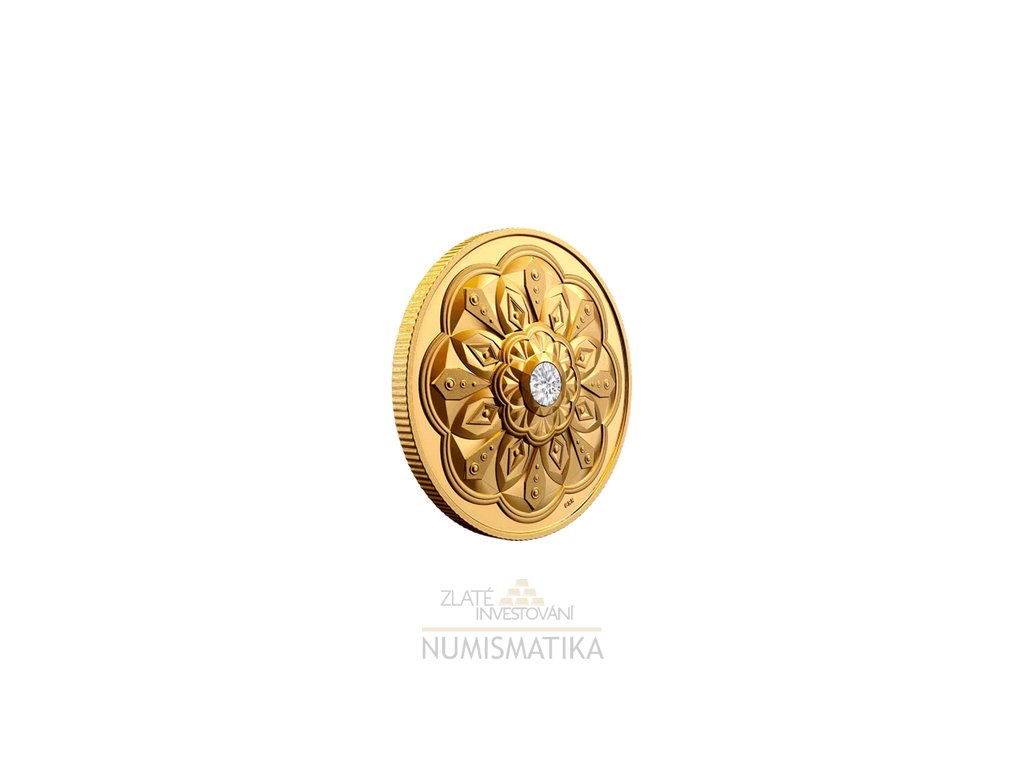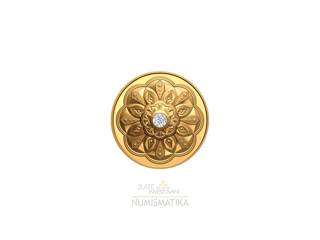 Zlatá mince ve tvaru diamantu s diamantem na vrchu z roku 2023 je velice krásná a neobvyklá...