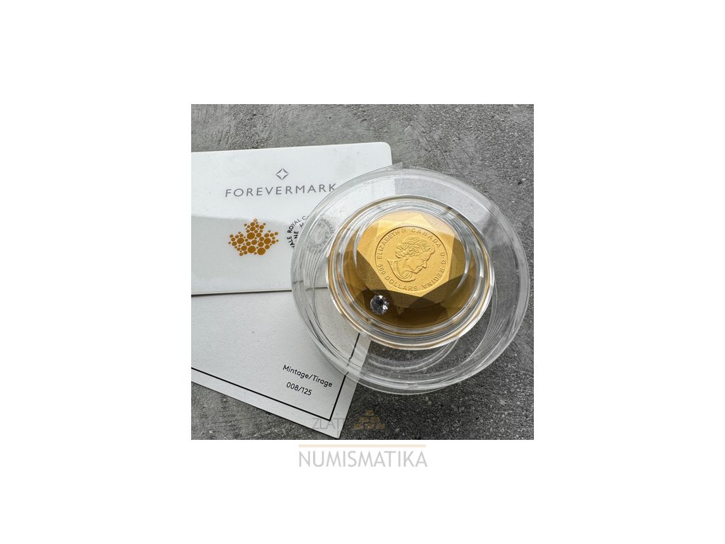 Zlatá mince ve tvaru diamantu s diamantem- 2023- Forevermark Diamond