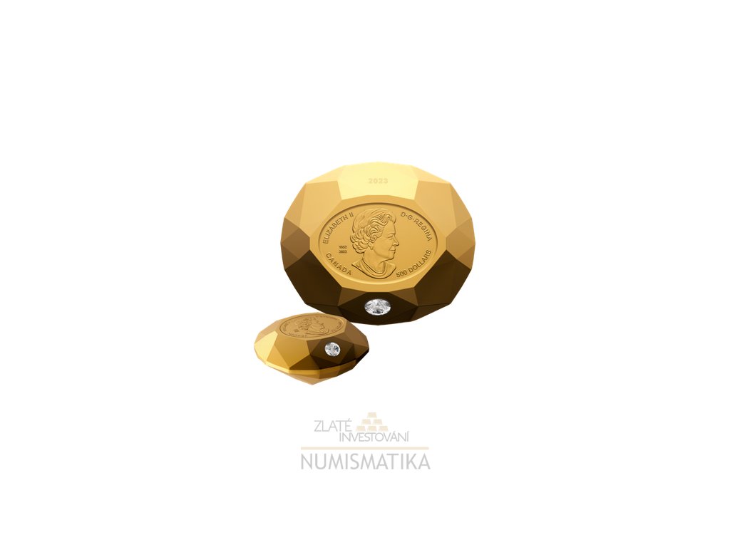 Zlatá mince ve tvaru diamantu s diamantem na vrchu z roku 2023 je velice krásná a neobvyklá mince. Na vrchu této mince je vyobrazena Elizabeth II.