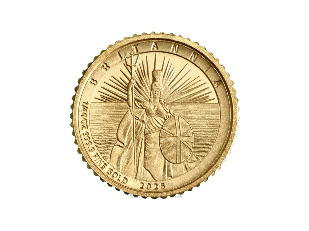 Zlatý set Britannia Gold Proof 2025 obsahuje 3 mince o hmotnosti 1/4 Oz, 1/20 Oz a 1/10...