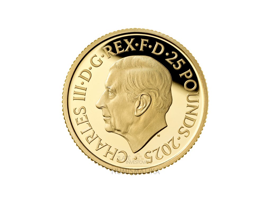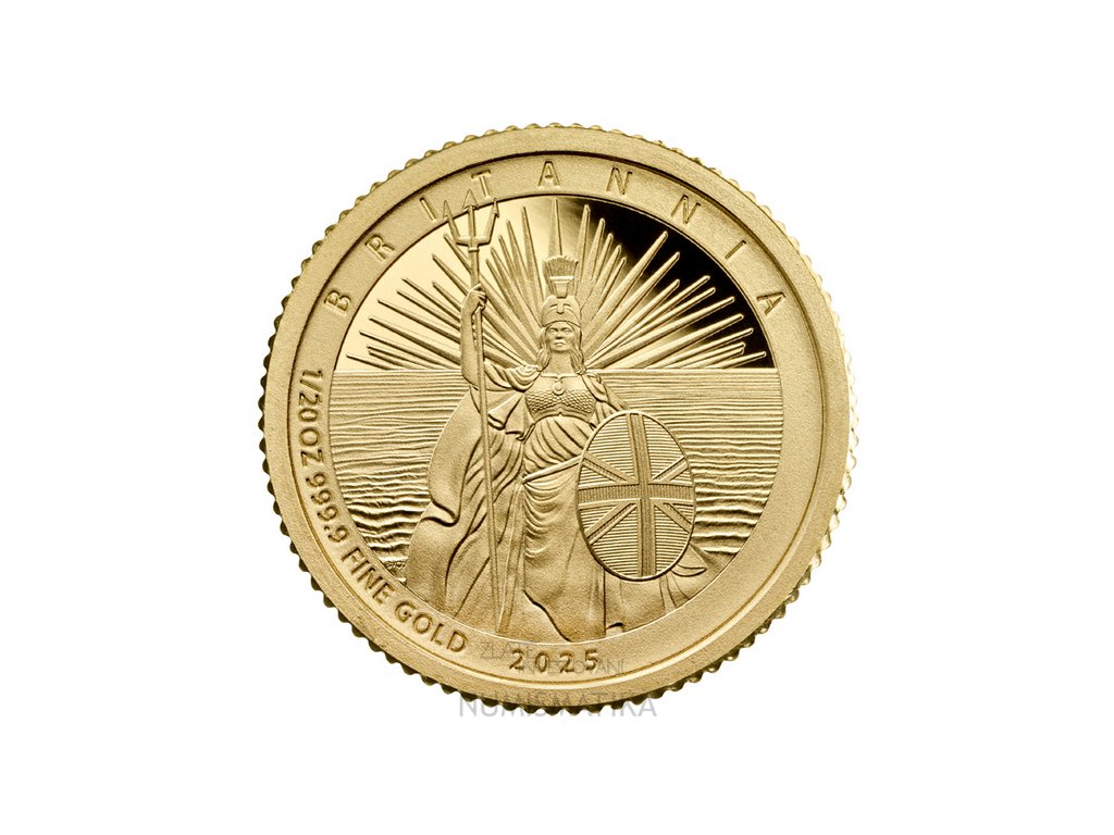 Zlatý set Britannia Gold Proof 2024 obsahuje 3 mince o hmotnosti 1/4 Oz, 1/20 Oz a 1/10 Oz.