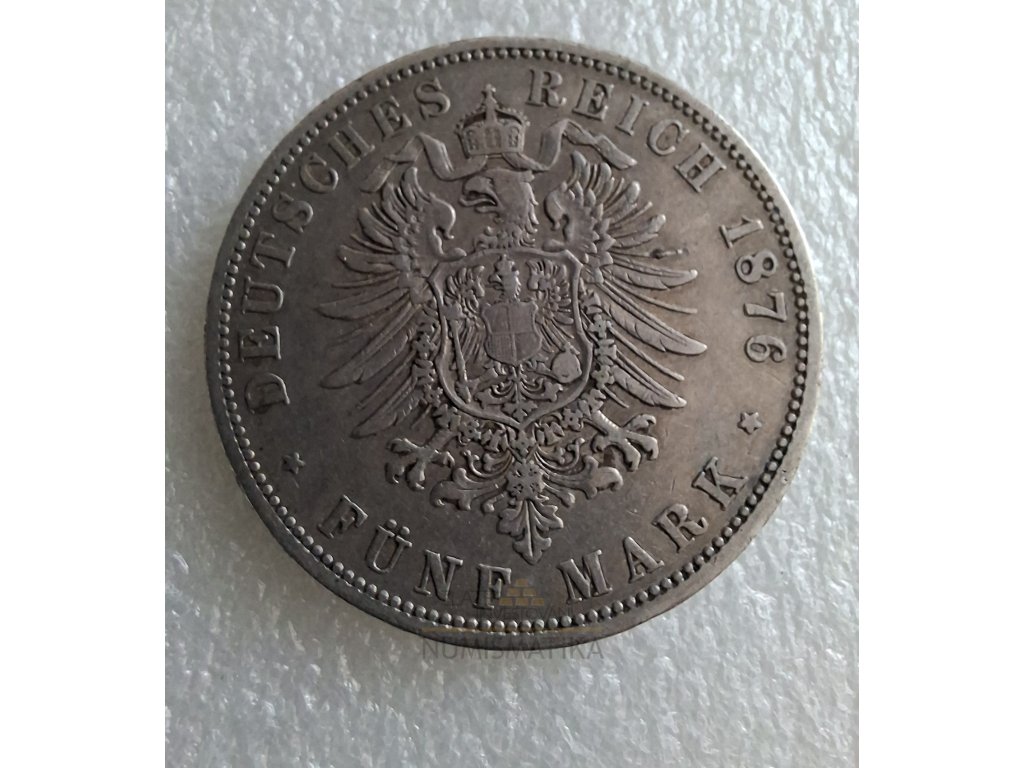 Stříbrná 5 marka Wilhelm I. král pruský 1876 C