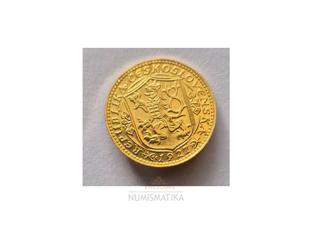 Svatováclavský zlatý dukát je mincí, která nebyla ražena pro obchodní oběh a stala se v Čechách nejoblíběnější sběratelskou mincí. Autory jsou: Jaroslav Benda (Av) a Otakar Španiel (Rv) Platnost mince byla od 23.10.1923 a její hmotnost je 3.49g. Ročník 1927 byl ražen celkovým nákladem 25 774 kusů a jedná se o vzácnější ročník. Mince skladem ve výborném stavu viz. fota.