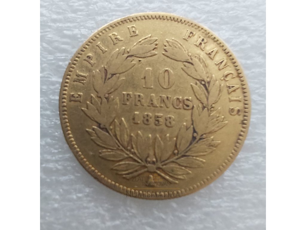 Zlatý francouzský 10 frank-Napoleon III. 1858