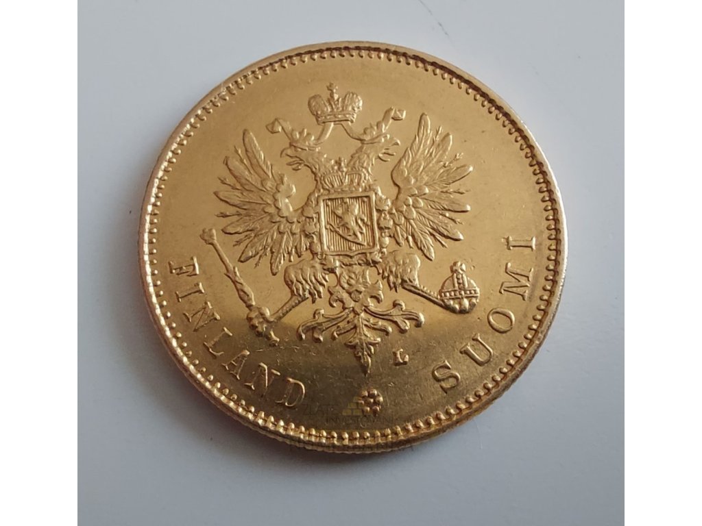 Vzácný ročník finské 20 marky z doby vládnutí ruských carů. Hmotnost mince je 6,4516. V oběhu od roku 1878-1913. Mince ve výborném stavu viz. autentické fotografie.