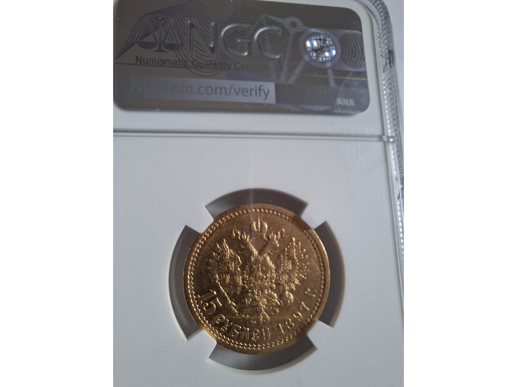 Zlatá mince ruský 15 rubl-car Nikolaj II. 1897-certifikovaný
