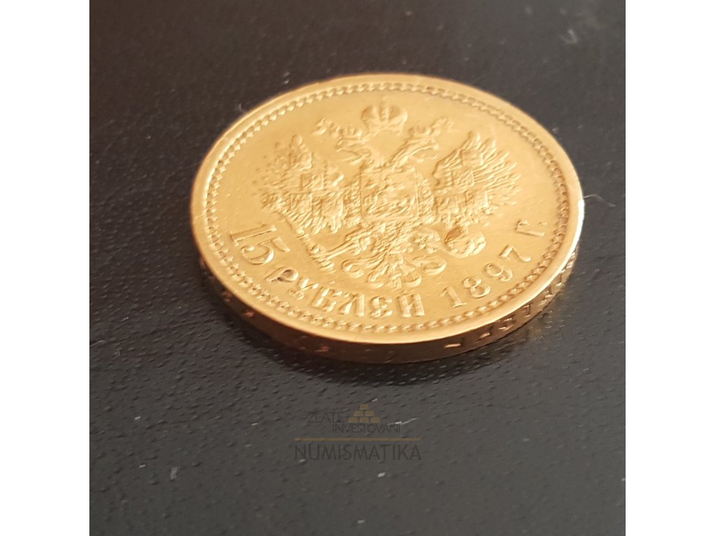 Zlatá mince ruský 15 rubl-car Nikolaj II. 1897-stav 1/1-akce