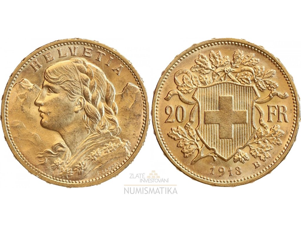 Investiční zlatá mince švýcarský 20 frank-Vrenelli 1913