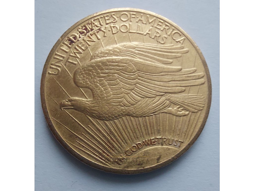 Americký double eagle je předchůdcem investiční zlaté mince americký eagle v jeho současné podobě. Double eagle je klasika klasik a neměl by chybět v žádné sbírce. Americká mince je navržena Augustem St.Gaudensem a byla používána v oběhu před více než 80 let. Obchodujeme ročníky 1907-1933 bez možnosti výběru roku. Některé ročníky těchto mincí patří mezi nejdražší mince vůbec. Mince obsahuje 0,9675 Oz ryzího zlata a její celková hmotnost je 33.436g. Foto autentické konkrétní mince.