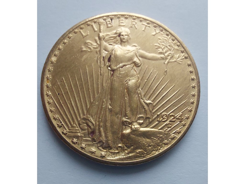 Investiční zlato-zlatá mince americký double Eagle St.Gaudens-1924-akce